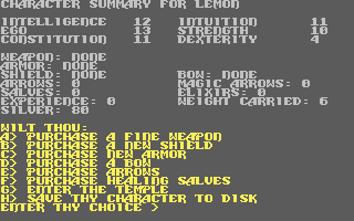 In retrospect, The Temple of Apshai seems quite limited and somewhat monotonous, but in its time, it pushed computer graphics into places they had never been on a home computer. Also, the spirit of this game shows clearly through the very extensive manual. There are few role-playing adventures that have the spirit of The Temple of Apshai. This game did for graphical adventures what Zork I had done for text adventures.